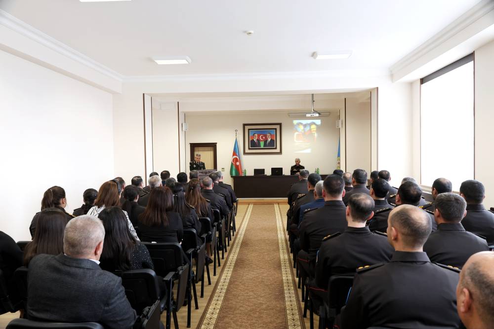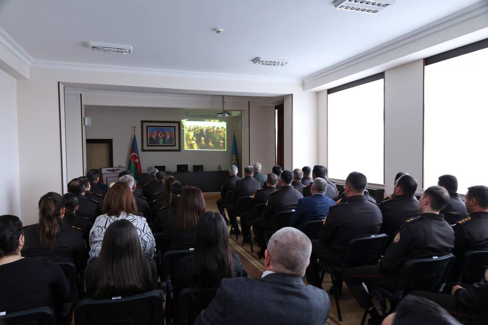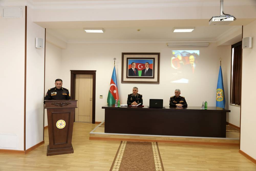 Tədbirdə Mülki müdafiə və əməliyyat planlaşdırma işinin təşkili idarəsinin rəisi mayor Şərif Əsədov çıxış edərək bildirib ki, yeni minilliyə məhz Heydər Əliyev zəkasının işığında qədəm qoyan Azərbaycan xalqı bundan sonra da bu müqəddəs mirası qoruyub saxlayaraq yeni uğurları ilə region və dünya sivilizasiyasına öz töhfəsini verəcəkdir.