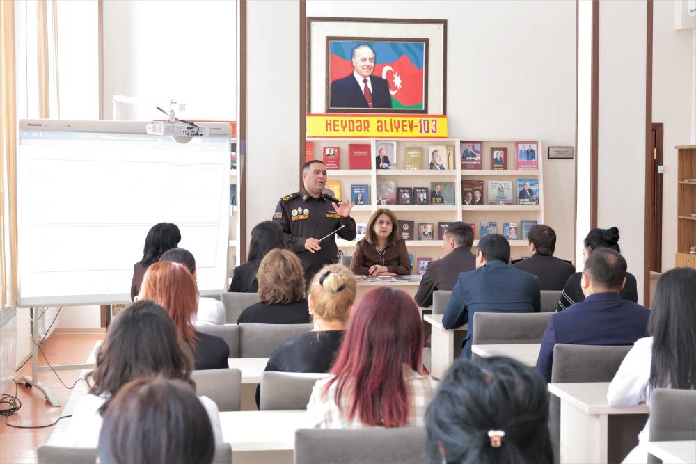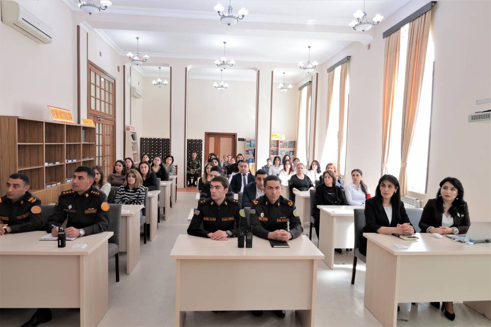 Əvvəlcə məşqin nəzəri hissəsində FHN-in əməkdaşları tərəfindən kitabxananın kollektivinə fövqəladə hallar, həmçinin yanğınlar zamanı zəruri davranış qaydaları, təxliyə tədbirləri barədə ətraflı məlumat verilib.